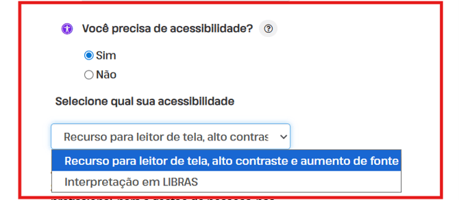 Esses recursos são disponibilizados na plataforma para garantir que todos os candidatos consigam realizar as etapas de avaliação de forma adequada às suas necessidades.