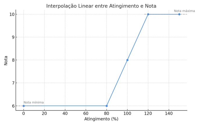 Se o atingimento estiver abaixo da menor faixa → a pessoa recebe a menor nota da escala.